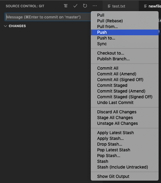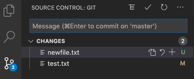Click the source control icon on the left. VS Code automatically recognises the directory as a git repository, and you should see a list of your changed files. If necessary, click the refresh icon.