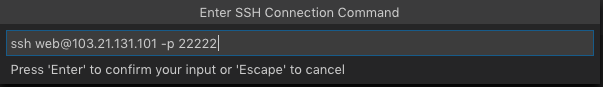 Enter the command to connect to your development server (see the M.D.G. IT server welcome email for details) and press Enter. The command should take the form of ssh web@<your-server-ip> -p 22222